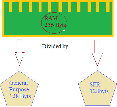 consists of 256 bytes of RAM memory, which is divided into two ways,