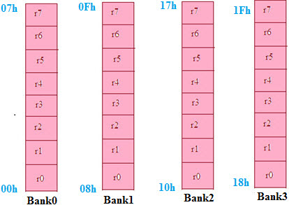 The RS1 and RS0, the bits in PSW register, are used to select different memory location (bank0 to bank4) in the RAM memory.